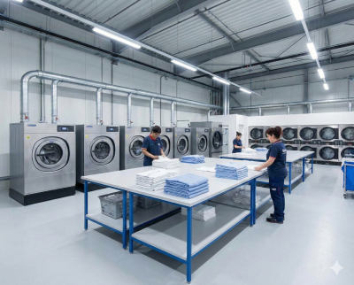 Industrial-grade washing machines capable of processing large daily volumes without compromising on quality or hygiene.