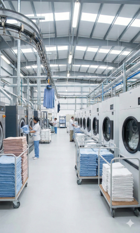 Industrial-grade washing machines capable of processing large daily volumes without compromising on quality or hygiene.